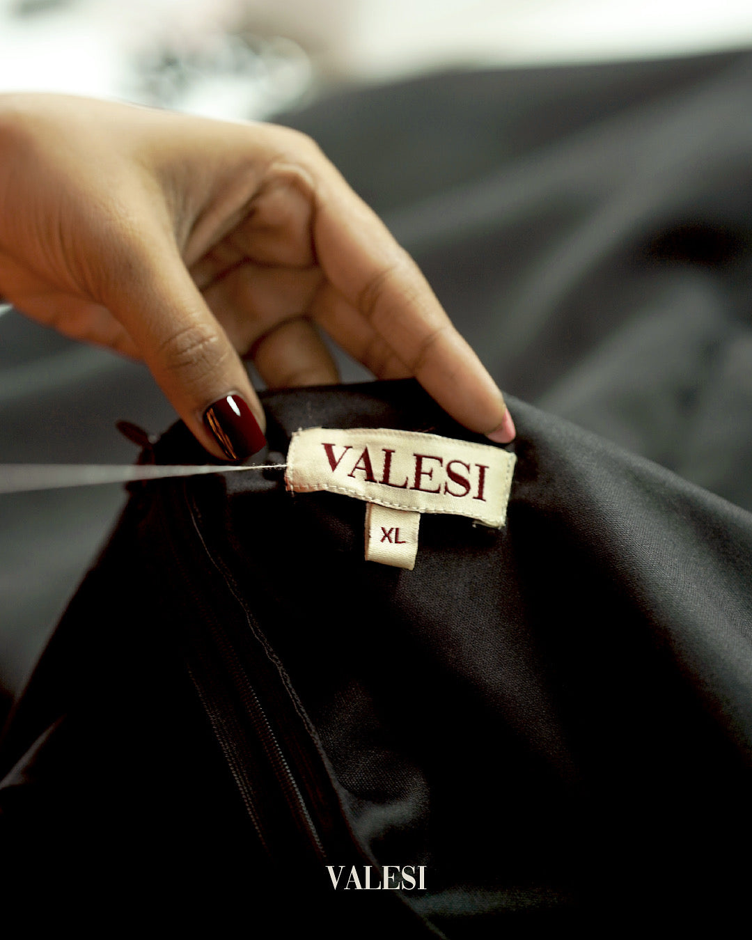 At VALESI, we believe clothing is more than fabric, it is identity, empowerment, and presence. Every piece is guided by the conviction that a woman should never have to choose between power and grace, comfort and confidence, function and finesse. Designed with sharp tailoring, intentional cuts, and hand-placed gold accents, our creations reflect timeless luxury and quiet authority. From our signature palette of deep wine red, ivory, and black to the VALESI monogram as a seal of distinction, every detail is a symbol of elegance made to endure. Each garment is a ritual of confidence, a second skin that transforms dressing into power dressing